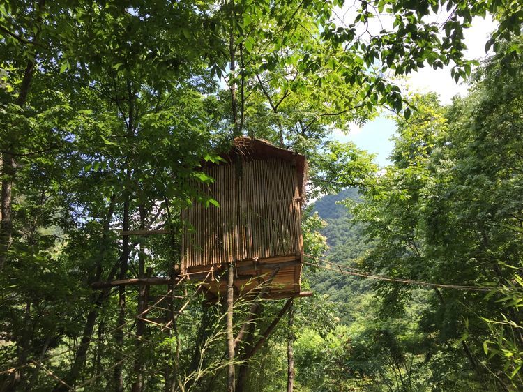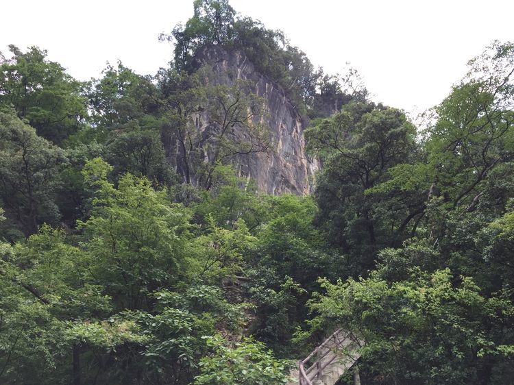 在长达两个多小时的游览中,我们来到了森林宿舍,那一座座小屋建在树叉的中间,倘若夜宿与此肯定会有一种别样的情怀,听泉水叮咚,百鸟争鸣,知了高歌的场景瞬间会让你找回原始的感觉,感悟原始部落,追寻野人的足迹,回想一路见到多个岩屋石窟,我在想,也许是野人曾在此居住过?不觉中俨然看到三朵花这几个朱红大字,这是著名宋代诗人苏轼的三朵花题诗