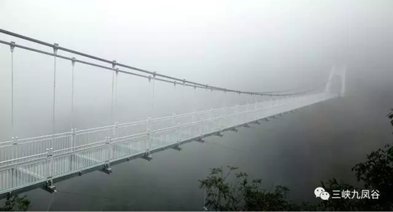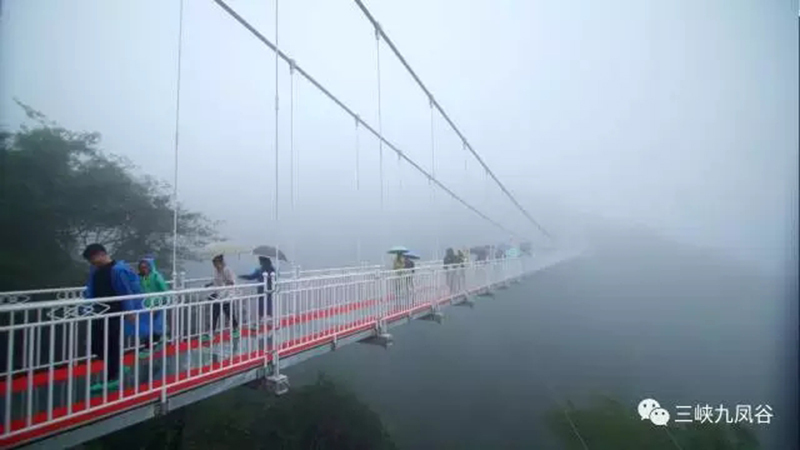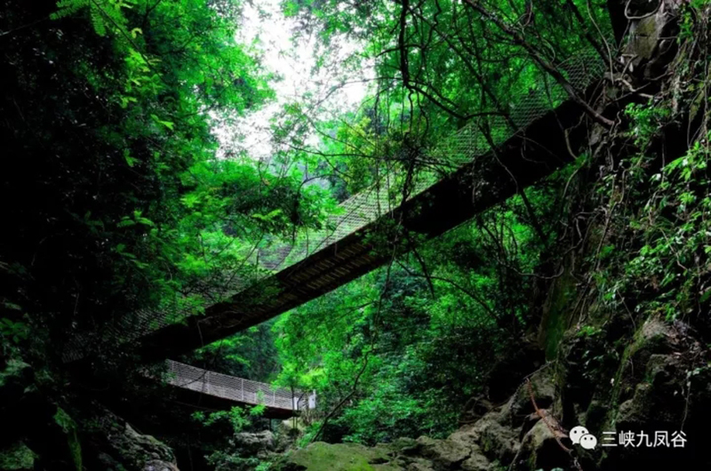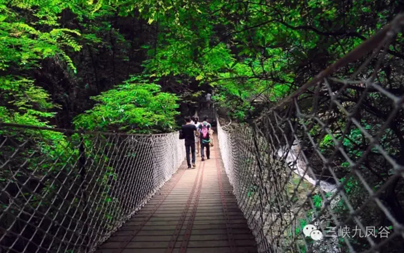 3、三峡九凤谷高空玻璃桥是长江三峡地区规模最大的玻璃桥、栈道、瀑布、滑索、观小猪赛跑等精彩表演;