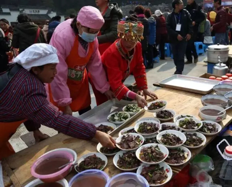1、杀猪宴,千人百桌,场面壮观,土家族的抬格子肥而不腻,美味佳肴,不虚此行;