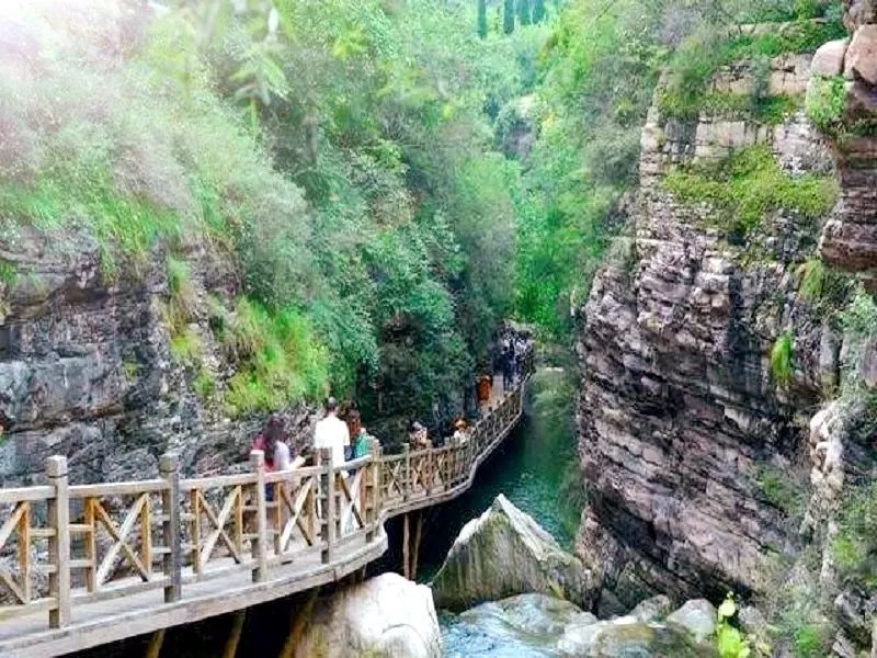 “太行明珠、峡谷瑰宝、中国第一情峡”美誉的——【红豆峡景区】,沿途可观赏万里森林防护墙,游览岩层文化和历史文化十分丰富、峡高谷幽,峰回壁隐,潭水清澈,奇岩罗列的人间仙境七仙峪、愿有情人终成眷属的月老潭、相传织女浆洗之地浣纱浴苑、被称作爱侣、情侣最现实的铭志创业发祥地相思园、以及云锦天衣、瑶池等景点。尔后游览红豆杉群集的地方,情景、情韵俱佳的三叠潭、通天古栈、曲径通幽、森林浴廊、形似骆驼的骆驼峰、殿宇巍峨,钟鼓匹配的魁星阁、紫云岭、“不到长城非好汗”的好汗坡、天福门等景点体会大自然山峰的雄伟,陶冶自身的情操。