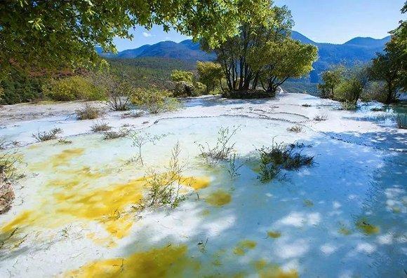 这处可以被称为中国版棉花堡的秘境,就藏在云南香格里拉县白地村——白水台。