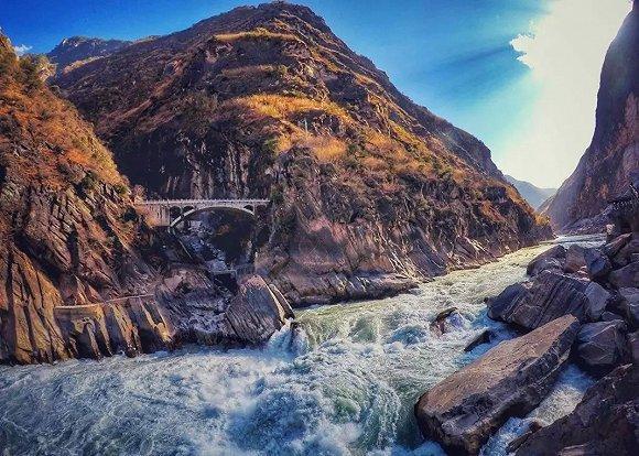 虎跳峡以“险”名天下,湍急的金沙江哈巴雪山和玉龙雪山之间的夹缝中硬挤了过去,却形成了世界上最壮观的大峡谷。