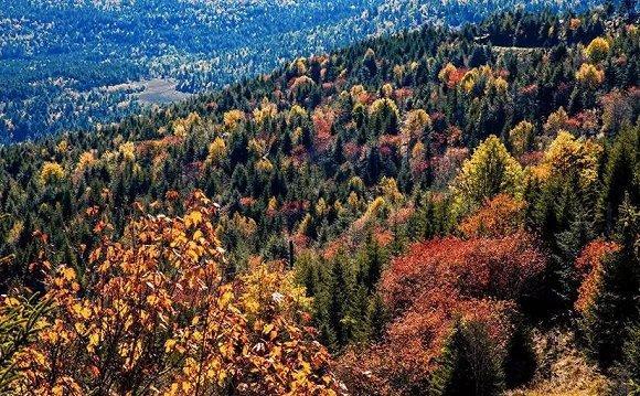 春季时湖畔的杜鹃花争相盛放,色彩斑澜;夏季冷杉云杉翠绿挺拔形成苍茫林海; 秋季的五角枫和红山层林尽染红透了天空;冬季第一场雪降临时,千湖山开始沉睡,等待来年的春暖花开。