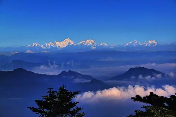 海螺沟地处横断山系的核心地带,境内延绵着众多终年积雪、冰清玉洁的雪山。贡嘎山以雄浑的身躯屹立于香格里拉腹地,海拔7556米,被誉为“山中之王”,为横断山系的主峰,周围林立着45座海拔6000米以上、100余座海拔5000米以上的冰峰、雪山,是世界上距离大城市最近的极高山群。极目远眺,群峰簇拥,贡嘎山主峰宛如一座巨大的金字塔,巍峨地屹立于群峰之巅,高大险峻、气势磅礴。