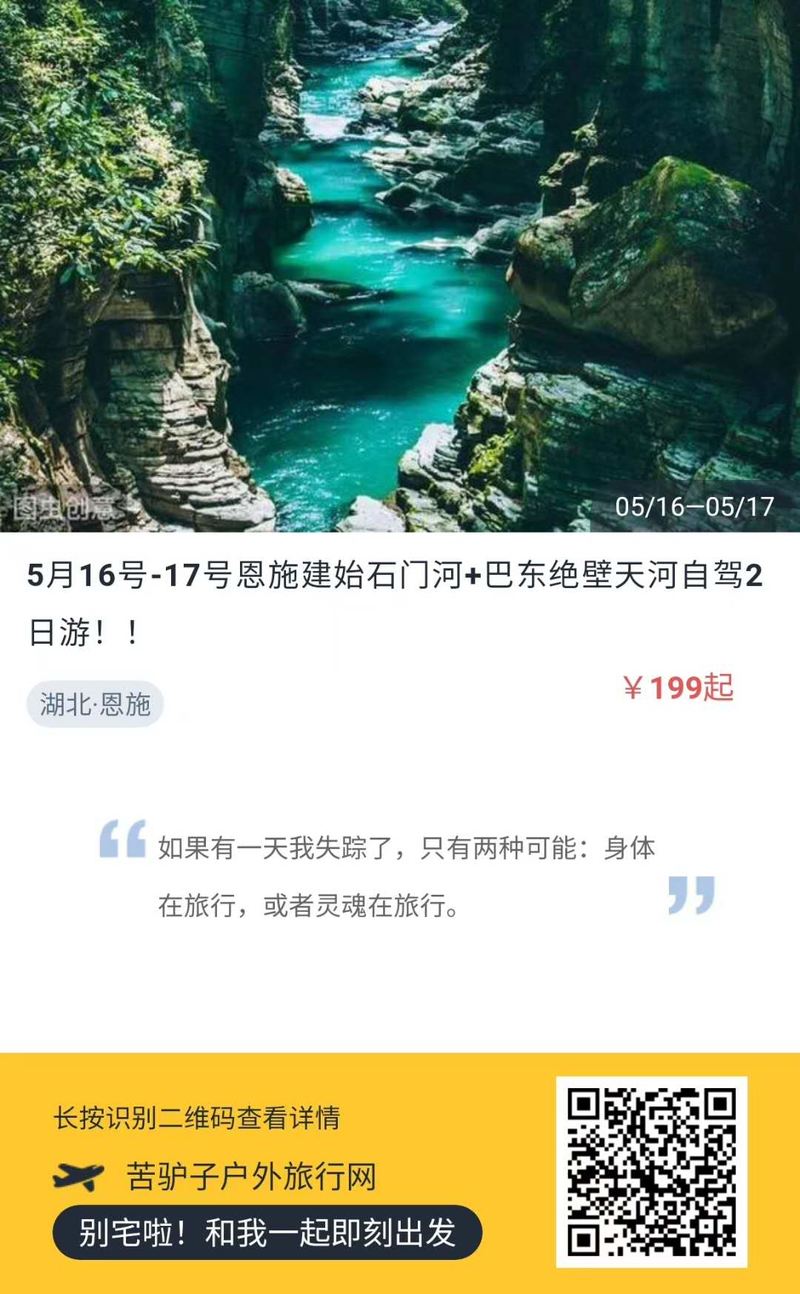 俱乐部特组织了5月16-17日石门河+绝壁天河活动!!!欲知活动详情,请双击下列图片!!欲知活动详情,请长按扫码!
