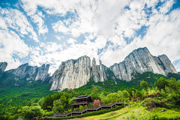 梭布垭石林拥有大小共100多个经典的自然景观,目前开放的有青龙寺、莲花寨、磨子沟、九龙汇四大景区,每个景区各具特色,景区内独特的“溶纹”、“戴冠”景观,是一大亮点,狭缝秘境、化石古迹随处可见,堪称一座远古地质博物馆。经中山大学、中国地质大学考证,确定石林形成4.6亿年前的奥陶纪时期,整个石林犹如一座海底迷宫,美轮美奂。黄鹤桥峰林位于花坪镇南部,清江北岸,海拔1200—1300米,属于类似张家界和柴埠溪的峰林地貌。此地奇峰林立,绝壁高耸,“欲与天公试比高”,绝壁间有一垂直狭缝,传说是黄鹤高飞之处,后人曾经搭桥联“天”接“地”,故名“黄鹤桥”。景点内各种大小石柱、奇峰、怪石、深谷、天堑、地缝、绝壁俱全。雄伟奇特的峰林景观在岩溶地貌中十分罕见,可谓“奇峰异石大观园”。