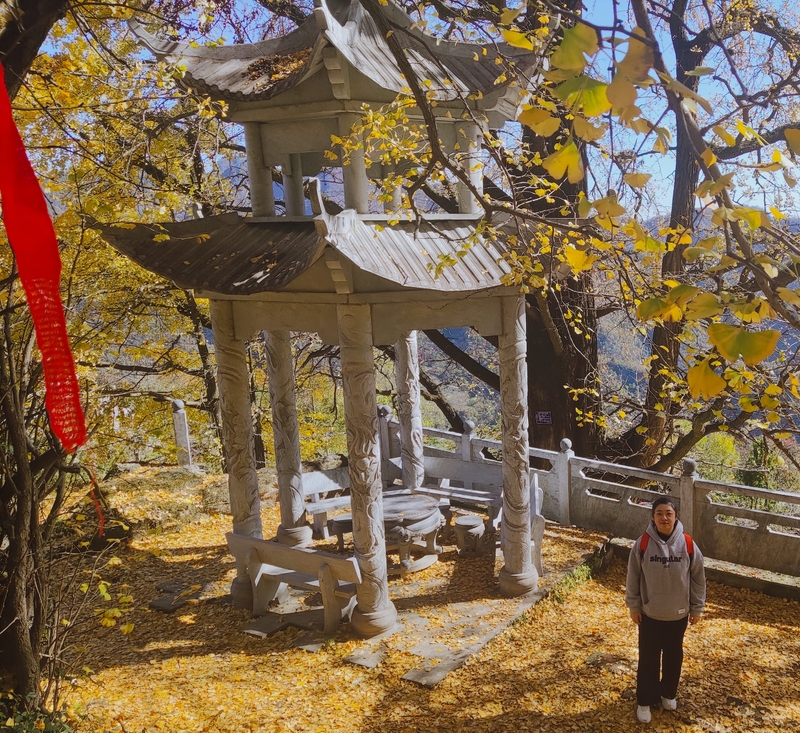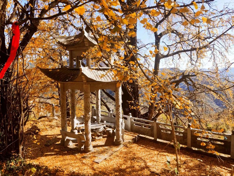 这里有3棵2500年以上的银杏古树,又是武当开山祖师爷尹喜曾经的隐修之所,还有遍地野生灵芝黄精仙草仙药仙茶,因此被称为“武当秘境”。武当山最古老的一棵银杏树已2870多岁了,相传是尹喜祖师爷在此地隐修时所种。现在每年还能结5千多斤白果。秋天一到,就有附近村民来树下捡拾。因为这里果多人少、运销困难,如此珍贵的千年白果有不少被村民倒掉了。希望乡村振兴战略的实施,能让这些国宝级的山货走出深山,为更多人造福。这里原来有3棵这样的千年银杏古树,现在只剩两棵。附近山民讲,当年一个连队在这里扎营住了3个月,才把那棵树全部运走。被伐掉的那棵,树桩经测量直径约3.6米,如今,又从树桩底部长出10来棵银杏树,成了一片银杏林。