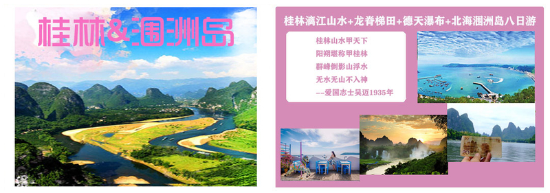 C线-桂林+涠洲岛丨桂林漓江山水+龙脊梯田+德天瀑布+北海涠洲岛+边城9日游