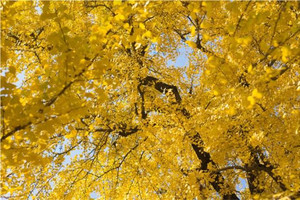 中国千年银杏谷有着全国罕见的“三千年古银杏群落”。曲径通幽,满山谷的银杏树高大挺拔,满目的金黄令人目眩神迷。抬眼望去,枝繁叶茂处,有累累硕果坠于其间,不论岁月更迭,不论世事沧桑,它们仿佛一直在践行着每年与秋的承诺。思绪翻飞,缤纷的叶片,似金色的雨,似翩翩蝴蝶,是无数美丽的精灵,随风飞舞。