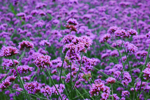 马鞭草紫色花海:紫色马鞭草的花语是正义、期待;它是一种十分神圣的花卉。它还有白色和红色,花语也是不一样的,白色的花语是纯真无邪,很期待自己的爱情;红色的花语是家和万事兴、同心协力。这种花卉的观赏性是比较高的,会在夏秋季节开花,所以人们也会用它来装饰,也可以被作为花束。