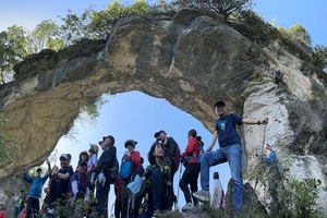 早6点30准时出发,约下午14:00左右到,先到登山点休闲打卡鹰嘴岩后换乘小车天生桥打卡赏红叶。晚上入住农家酒店,20人以上,我们就搞篝火晚会。