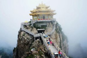 古名景室山,因道教始祖老子归隐修炼于此而更名。唐太宗李世民认老子为祖,颁御旨监修老君庙,封“铁顶”老君山为“天下名山”,与湖北武当山“金顶”南北呼应。八百里伏牛主峰老君山,海拔2200米,是国家级自然保护区,山水景点七十二处,其石林奇景被世界地质公园评审专家赵逊先生称是“迄今为止世界范围内发现规模最大的花岗岩峰林奇观”。