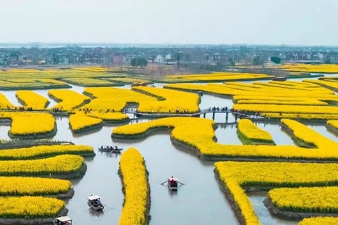 ★ 游览【船游垛田油菜花】(约2小时)据考证,750年前,缸顾乡农民在水中取土堆田,整齐如垛,并在上面种植农作物,成为独特的垛田。每年的清明前后,千姿百态的垛田形成了上千个湖中小岛,岛上都开满金灿灿的油菜花,在水面上形成一大片金黄色的“花海”,一望无际,令人叹为观止,坐着船娘划的农家小木船穿行其中,会领略到“船在水中行,人在花中走”的独特感受。 (每年三月中旬到四月上旬为油菜花盛花期,具体以实际天气因素而有不同),然后车赴无锡,入住酒店