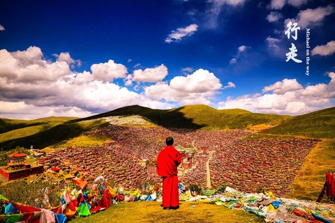2.色达:色达县位于四川省甘孜藏族自治州,这里一直保留着原始的生活状态,有广阔的草原、纵横的河曲、密布的湖沼、巍峨的雪山,海拔在4000米以上,气温较低,长冬无夏。陪我去坛城在佛学院最高的山峰上,有一个金碧辉煌的建筑,叫做“坛城”,也是藏传佛教眼中最完美的世界。来到这里的人也许是为了一窥那草原上的壮阔,也许是为了一睹藏民自然天葬的民俗,更多的是为了到世界上最大的佛学院来净化心灵。但不管是为了什么,这里都是可以让你消除疲惫,回归恬淡之地。在距离色达县城20公里的地方,有一条山沟叫喇荣沟,顺沟上行数里,就是举世闻名的喇荣寺五明佛学院,也称色达佛学院。这里的僧舍很壮观,连绵数公里的山谷布满了密密麻麻的小木棚屋,远远望去犹如一张密集的织网在山坡上铺展开来,非常壮观和震撼。谷底和山梁上分布着几座寺庙和佛堂,身披桨红色僧袍的喇嘛和尼姑来来往往,空气中充满了生机、祥和的气氛。