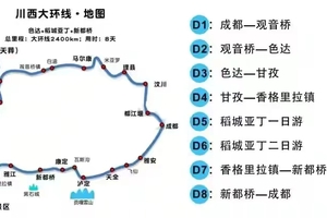 3.新都桥:新都桥是令人神往的"摄影天堂",地处在公路318国道南、北线分叉路口,是一片如诗如画的世外桃源。神奇的光线,无垠的草原,弯弯的小溪,金黄的柏杨,山峦连绵起伏,藏寨散落其间,牛羊安详地吃草……川西的平原风光美丽地绽放。这,就是新都桥,令人神往的"光与影的世界"、"摄影家的天堂"。
