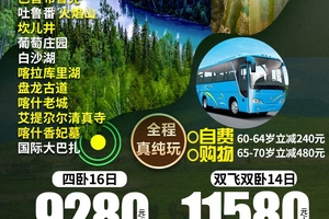 【活动时间】:7月17日/7月20日/7月24日/7月27日/7月31日发团,火热报名中! 【活动费用】:四卧14日9980元/人、双飞双卧14日12580元/人 【活动明细】: 1、交通:西安=乌鲁木齐飞机(含机建燃油);乌鲁木齐-喀什火车硬卧。(只保证出团,保证每人一铺,不指定铺位,不保证同行的人是否挨在一起,请客人予以理解,以我社实际所出铺位为准) 2、住宿:入住当地四星标准酒店住宿(未挂星),全程不提供自然单间,出现单男单女加床或补房差。(注:由于旺季来临之近,酒店房间有限,我们会安排标明酒店名称以外同级酒店,但不是降低标准以我社出发前通知客人入住的酒店为准) 3、餐饮:行程中团队标准用餐,13早餐14正,正餐餐标40元(正餐为八菜一汤10人一桌,酒店含早。自由活动期间用餐请自理如因自身原因放弃用餐,则餐费不退;喀什段的3个正餐,若不足10人,司机兼导游,则餐现退或者由司机现安排) 4、门票:行程中包含天池门票95及区间车60、坎儿井40、葡萄庄园60、火焰山门票40、巴音布鲁克门票65及区间车75、那拉提门票95及区间车24、薰衣草观光园35、赛里木湖门票70及环湖区间车费用75、魔鬼城门票42及区间车20、五彩滩门票45及车费、喀纳斯门票230及区间车、禾木景区门票50及区间车52,可可托海门票90及区间车26等景点、喀拉库勒湖45、盘龙古道、提尕尔清真寺30、香妃墓30、老城区等。注:(景区内电瓶观光车、缆车、客人自理,景区内的各种小商店不计旅游行程中规定的购物点) 5、导服:当地挂牌优秀导游服务;10人以下司机兼导游。 6、保险:旅行社责任险为法定险,赔偿限额为10万元,强烈建议客人购买相关的个人保险。 7、儿童价标准:儿童价特殊说明:儿童含:当地旅游车费;儿童不含:不含酒店住宿、酒店不含早、不含景点门票,不含大交通,不含餐,不含的费用产生自理。备注:景区1.2米以下不收门票,如超过1.2米以上门票自理,占床与否大人可根据实际情况提前告知;一般12周岁以下不超过1.2米的为儿童,超过12周岁身高超过1.2米以上的和大人收费一样。 【费用不含】: 1、交通:不含大交通及乌市往返喀什机票。 2、成人:个人消费、行程以外的费用、景点电瓶车或缆车、景区第二道门票、旅游意外险、航空保险、全陪。 3、儿童:个人消费、行程以外的费用、火车票、旅游意外险、航空保险、儿童不占床位、不含早餐费、不含所有景点门票费用。 【退费说明】: 报价是团队打包价,如有未产生项目,按退费明细表执行,门市价格不做为退费参考;如因个人原因自愿放弃当地景点、用餐、住宿及赠送项目的,费用不退还;如客人持有老年证,导游证,军官证等请提前说明,以便购票前申请减免,购票后再说明的,费用无法退还,学生、记者证全程门票无减免。 【退费明细】:全程门票全免退480元,全程半价退240元(赠送的景点,不去不退费)