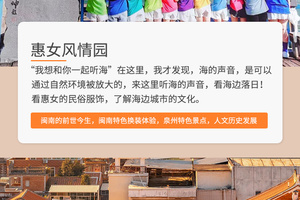 惠女文化的缩影,吹着海风,在蓝天大海的拥抱中,体验传统惠女服饰,拍照打卡,成为一道靓丽的风景线。