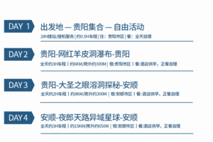 ②大约下午15:30左右送达贵阳北站、下午16:00左右送达贵阳龙洞堡机场,如当天需要返程的小伙伴一定要购买下午16:30以后贵阳北站返程的高铁动车票或晚上18:00以后龙洞堡机场的返程机票,以免造成赶不上火车或飞机。如需前往贵阳东站的朋友,请在贵阳北站下车后自行打车前往贵阳东站,贵阳东站返程的高铁请定16:30后的返程班次。