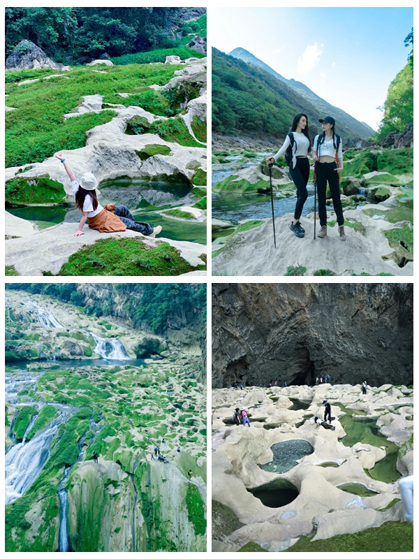 ①今天的徒步路程约6公里,累计爬升约为350米,瀑布溶洞峡谷风光为主,需要山路,有陡坡路段、雨季道路泥泞,需要穿防滑的鞋子和带备换衣服鞋子。