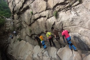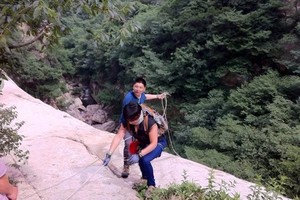 2.狼道小华山,位于南岩!传说中只有狼才能走的路,直上直下,一路上上升需要6次用绳 ,下降需要4次用绳。这一天才是真正的挑战。【费用明细】:成人299元/人(谢绝未所年人参加)。