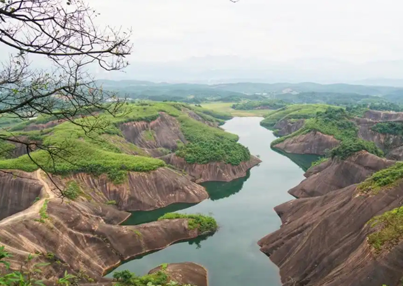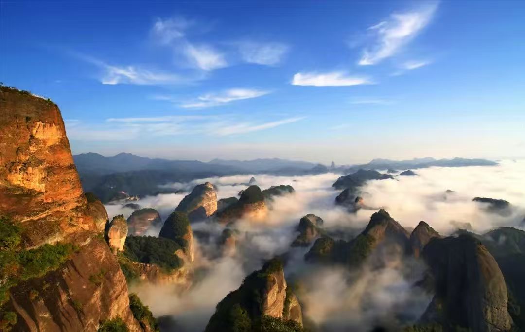 韶关市丹霞山景区,简称丹霞山景区,位于广东省韶关市仁化县境内,是丹霞山世界地质公园五大景区之一。,作为红砂岩峰林地貌的典型代表,其顶平、身陡、麓缓的岩石特征成为“丹霞地貌”命名依据,素有“中国红石公园”之称。