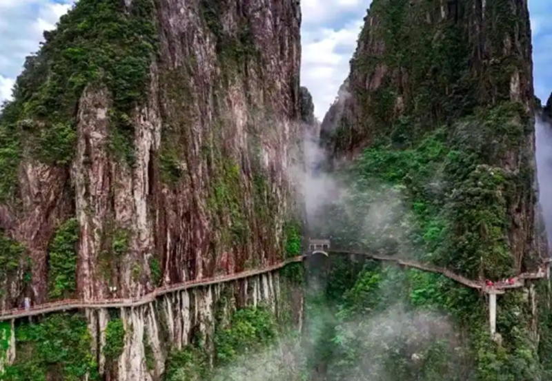 中国南方最长的云间栈道,总长约8公里,海拔1400米至1600米。