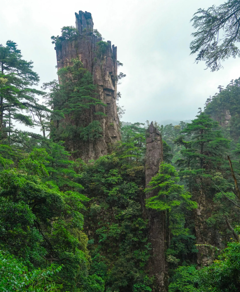 这里有金鞭神柱高120米,直径约20米,就像一根石鞭,又似一道擎天柱子,以冲天之势昂然耸立云天,故名“金鞭神柱”,也被视为莽山的镇山神柱。