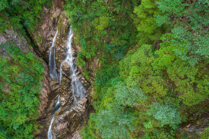 猴王寨背靠原始森林,危崖峭壁,古木蔽天,瀑群壮观。源头的青龙溪从将军寨泻下,穿越原始森林的千涧万壑,最后在奉天坪群山大峡谷间似一条怒吼的青龙跃下,如腾龙舞到了最壮丽的高潮。