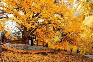 看千年古树,赏银杏群落,漫步十里画廊,走磨盘石道,……金秋时节遍地金黄,美若仙境,灿若画卷,金色的童话实际,宛若世外桃源。