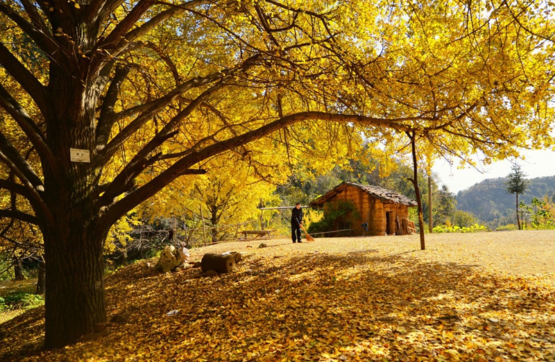 秋季,中国千年银杏进入了一年中最华丽、璀璨的时光。谷内层林尽染,金黄落叶缤纷,远远望去,宛如一个盛大的金色世界,映衬着千年的石磨古道,晕染出无限的韵味。秋风扫过,就像成千上万只蝴蝶,在半空中飞旋,发出“沙沙”的声响。秋风过后树叶飘落到地上,像铺上了金色的地毯,成金秋赏景佳地。