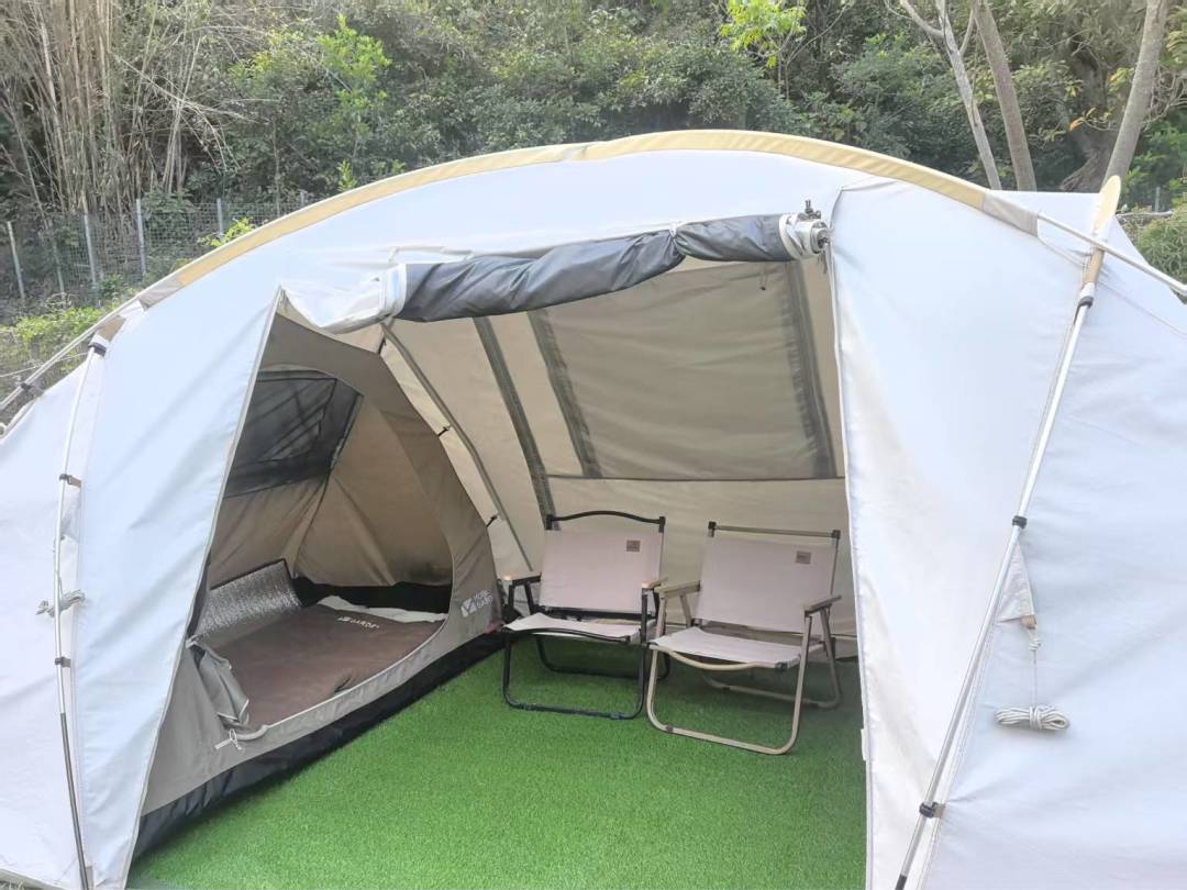 西湾营地也有少量轻奢帐篷提供,均为两室一厅帐篷(默认2人一顶)帐篷内提供睡袋、充气床垫,充气枕头,含1晚餐(不少于两肉一菜个人份量自助餐),1早餐(港式餐蛋面类早餐),含热水洗澡、充电、提供热开水。