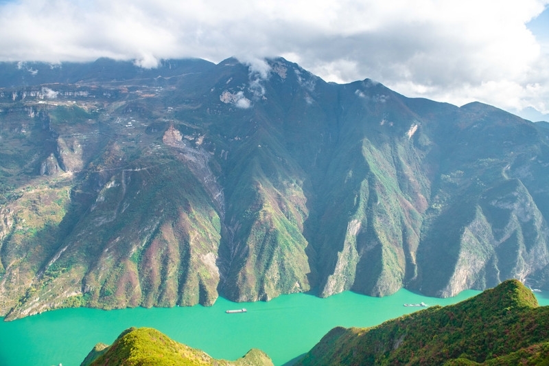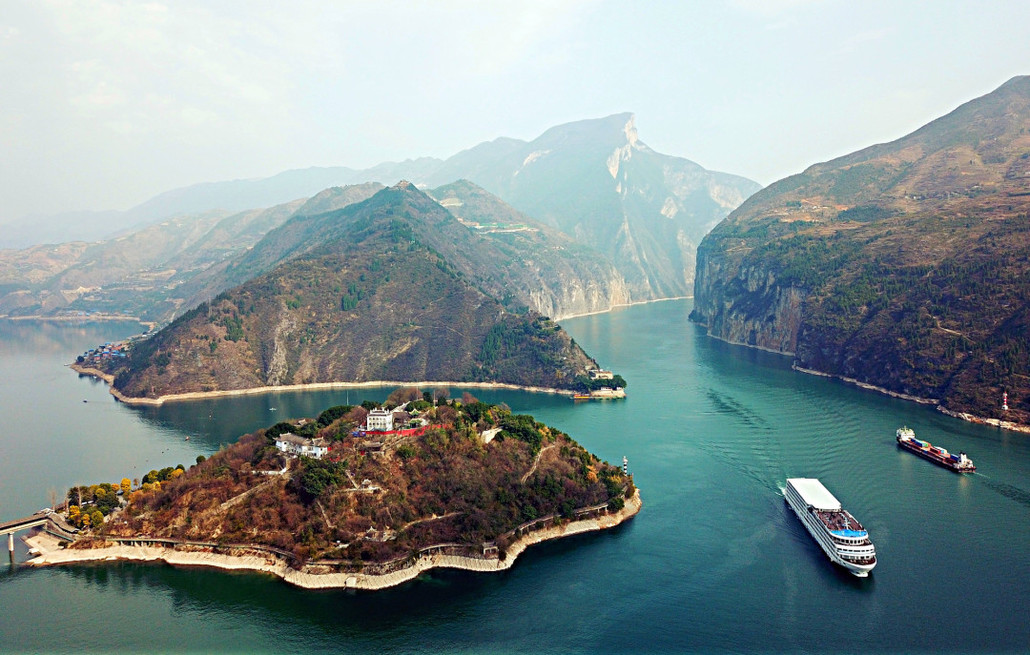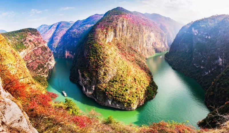 10月后,江水开始幽绿泛蓝,青山开始点缀红叶,蓝天白云下的长江三峡展现出它最美的季节。