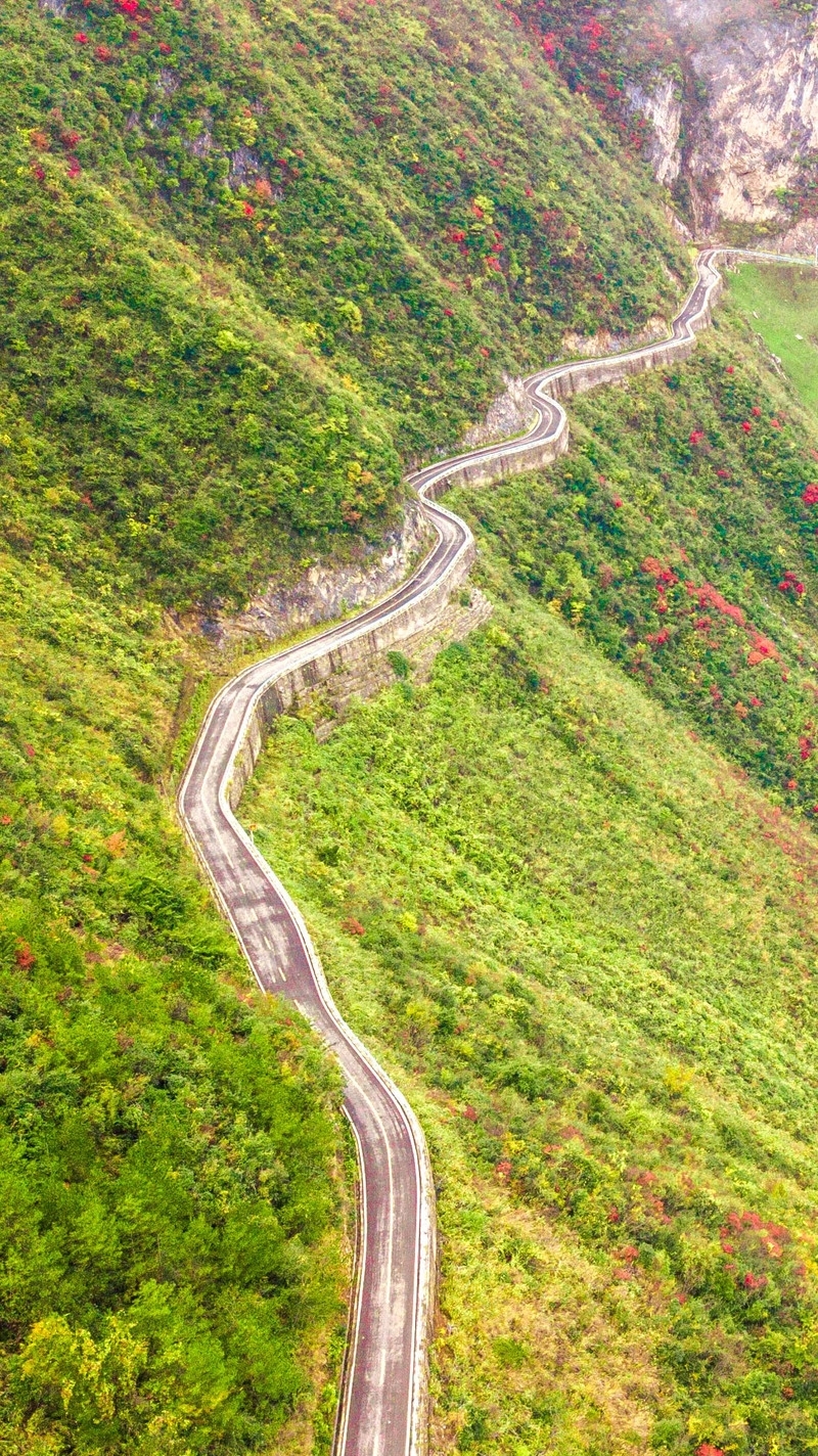 【神女天路】位于神女峰南环线,从县城搭乘景区的大巴行驶一个多小时之后才能抵达这片世外桃源之地,从柳坪接待中心换乘观光车在1000多米的群山之中蜿蜒穿过,在云雾之下宛若银蛇,连绵数里的便是神女天女的“真身”,这条公路素来有着“三峡云巅,神女天路”的美称。如果说望霞步道是神女景区北线的绝美栈道,那么神女天路就一定是南线内最为迷人的彩林之路了。
