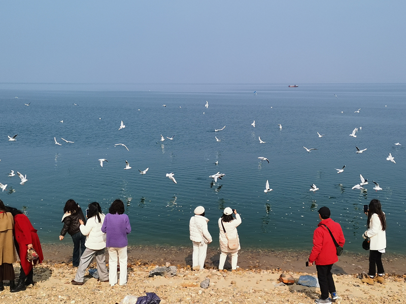 水润北国,引客至淅,观鸥翔集。在香花镇宋岗码头,每到冬季,就有很多鸟类前来打卡,也吸引很多游客前来游玩。红嘴鸥跨越千山万水,在丹江之畔、青山脚下安家落户,作为这里的“老朋友”,它们或低掠水面觅食,或群起振翅高飞,自由自在。
