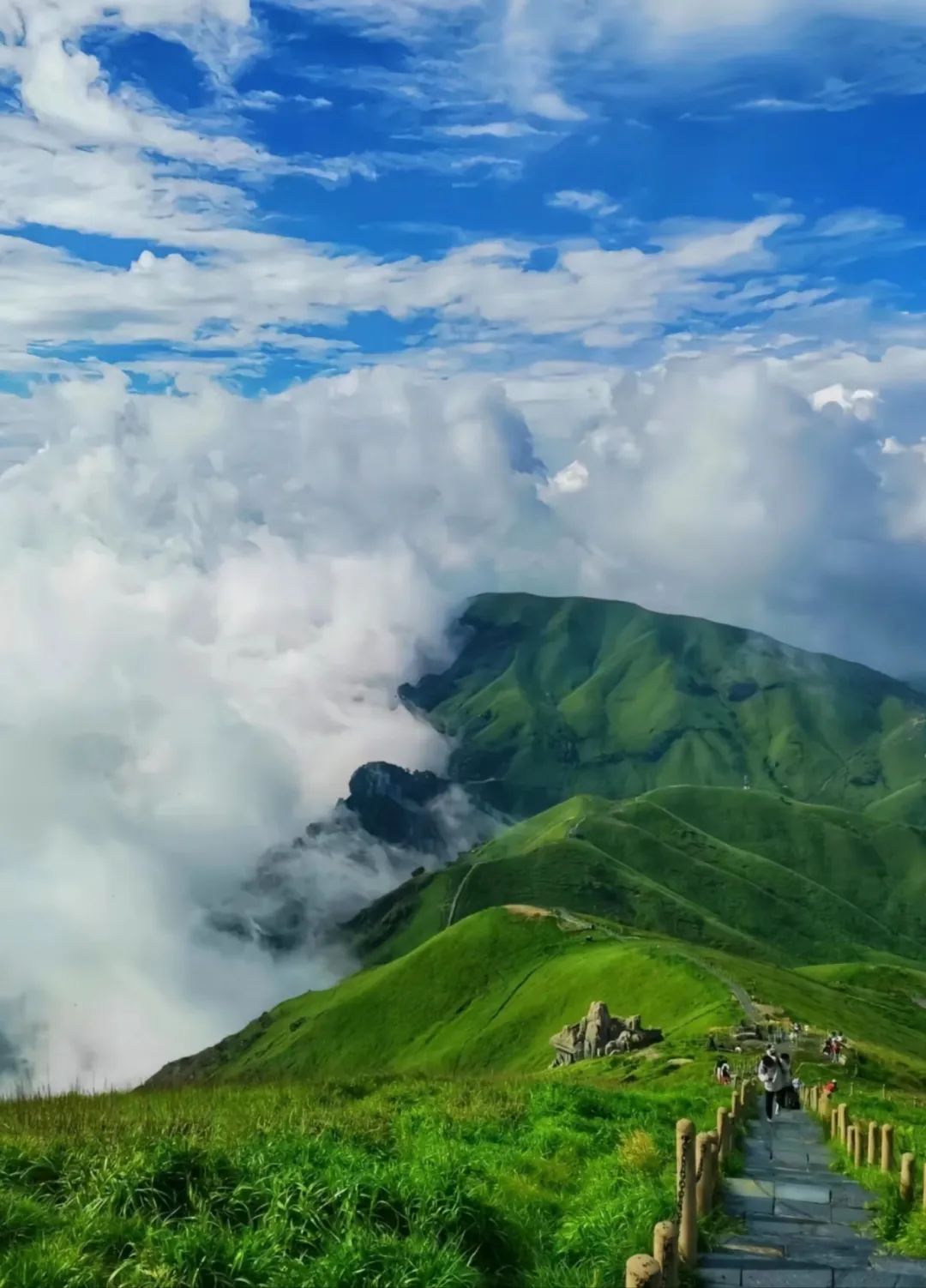 现在的武功山漫山遍野都是绿色的草原