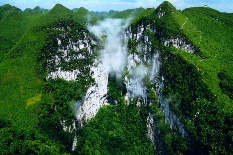 广西的西北部乐业县有一群世界闻名的世界岩溶胜地天坑群体。到处都是中国西南典型的岩溶峰丛地貌