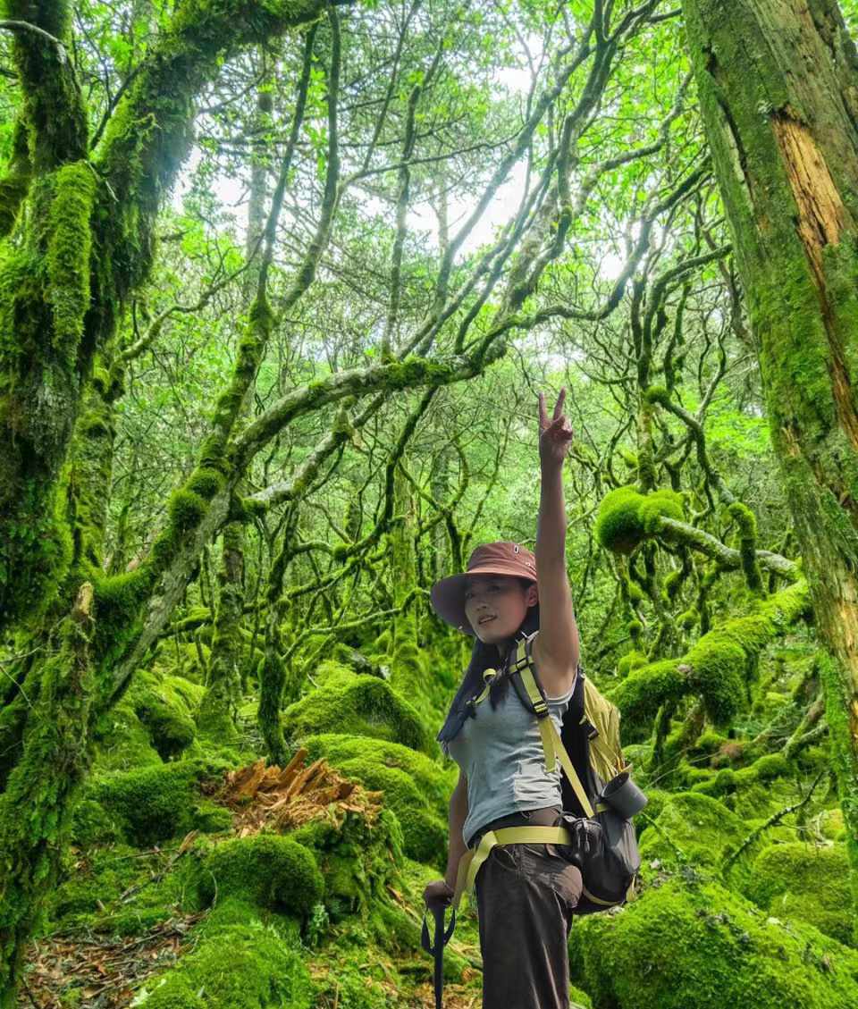 接着我们前往【金山原始森林】。这里完全就像电影里的绿野仙踪,树上路上都长满了青苔和各类植物,负氧离子含量极高。我们沉浸在雾气缭绕的原始森林中,忍不住感叹大自然的鬼斧神工!