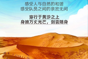 今日沿途可远眺月亮湖(不进入湖内),碧绿湖水、漫漫黄沙、蔚蓝天空在这里交织成一个美妙的画卷,继续行走10公里到达终点! 领队在终点为大家颁发奖牌,集沙瓶,合影留念;午餐过后,大家一起返回银川解散。