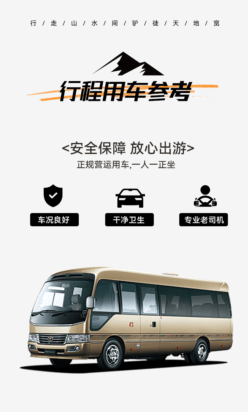 3、我们一般会在出发前一天14:00--18:00微信/电话/短信等方式发你车号及特别注意事项,请及时查看,如未接到通知请务必来电。