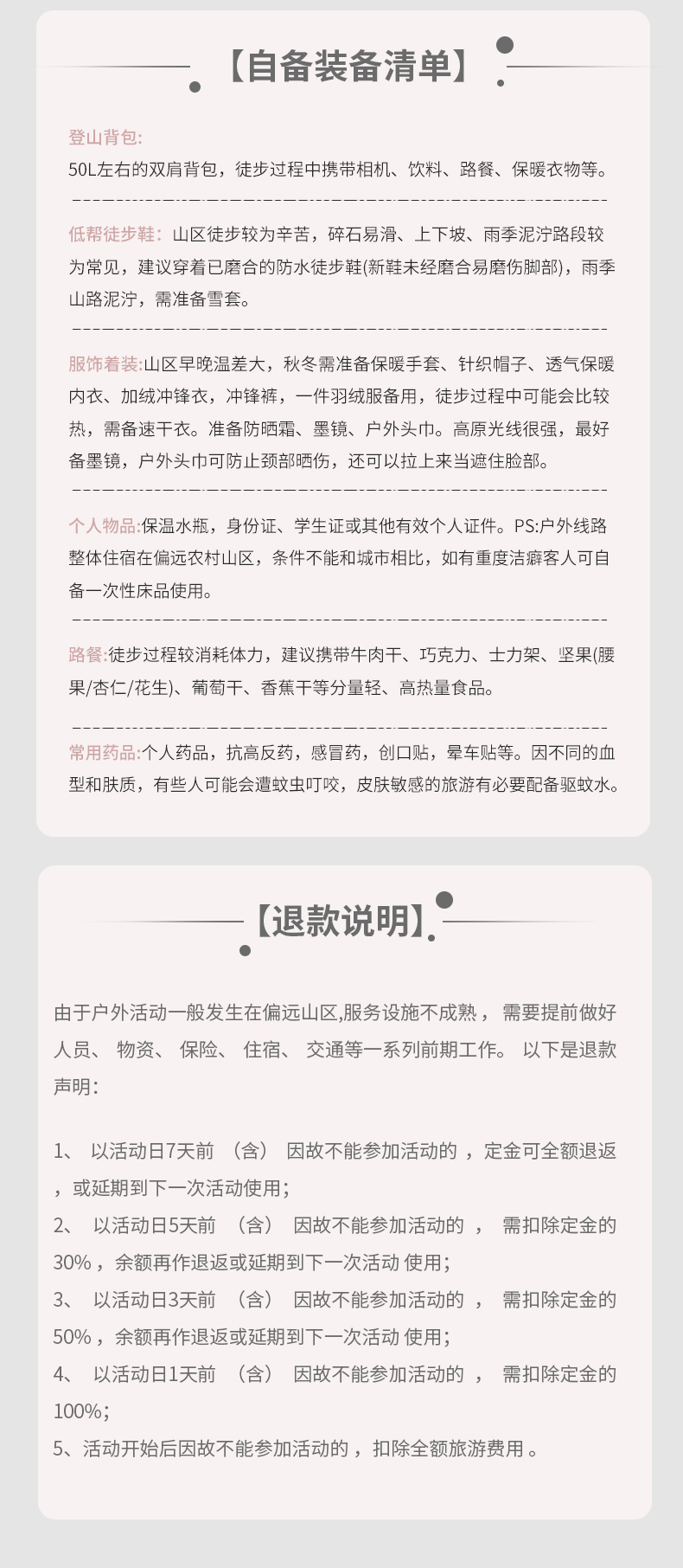 2.活动开始前3-1日退出,扣除旅行费用总额的40%作为违约金;