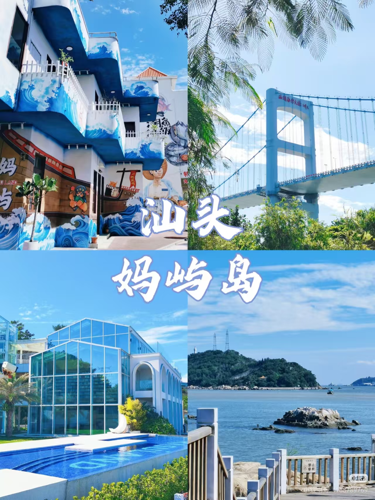 早餐后前往汕头地标网红地汕头【妈屿岛】妈屿岛是内海湾一个小众海岛,有修建自清朝的妈祖庙宫,现在去游玩的除了以前的景点,还多了妈祖蓝、海边栈道、花田、渡口和涂鸦街等,岛屿上景色、建筑、涂鸦墙等配色非常日系,被誉为“汕头小镰仓”,拍照很出片。午餐后乘车前往国家历史文化名城—【潮州古城】(观光车20自理)游览【滨江长廊】景观带自然风光秀美,古树佳木成林,四时繁花似锦,四季皆有迷人景色,四时皆有醉人景观,徜徉其间,山光、水色、绿意、花香、鸟语和清爽的江风,予人以无穷的舒心与快意,让人获得如洗的心境;灿若繁星的文物古迹、古今人文,则使人感受到潮州历史文化的厚重和神奇。