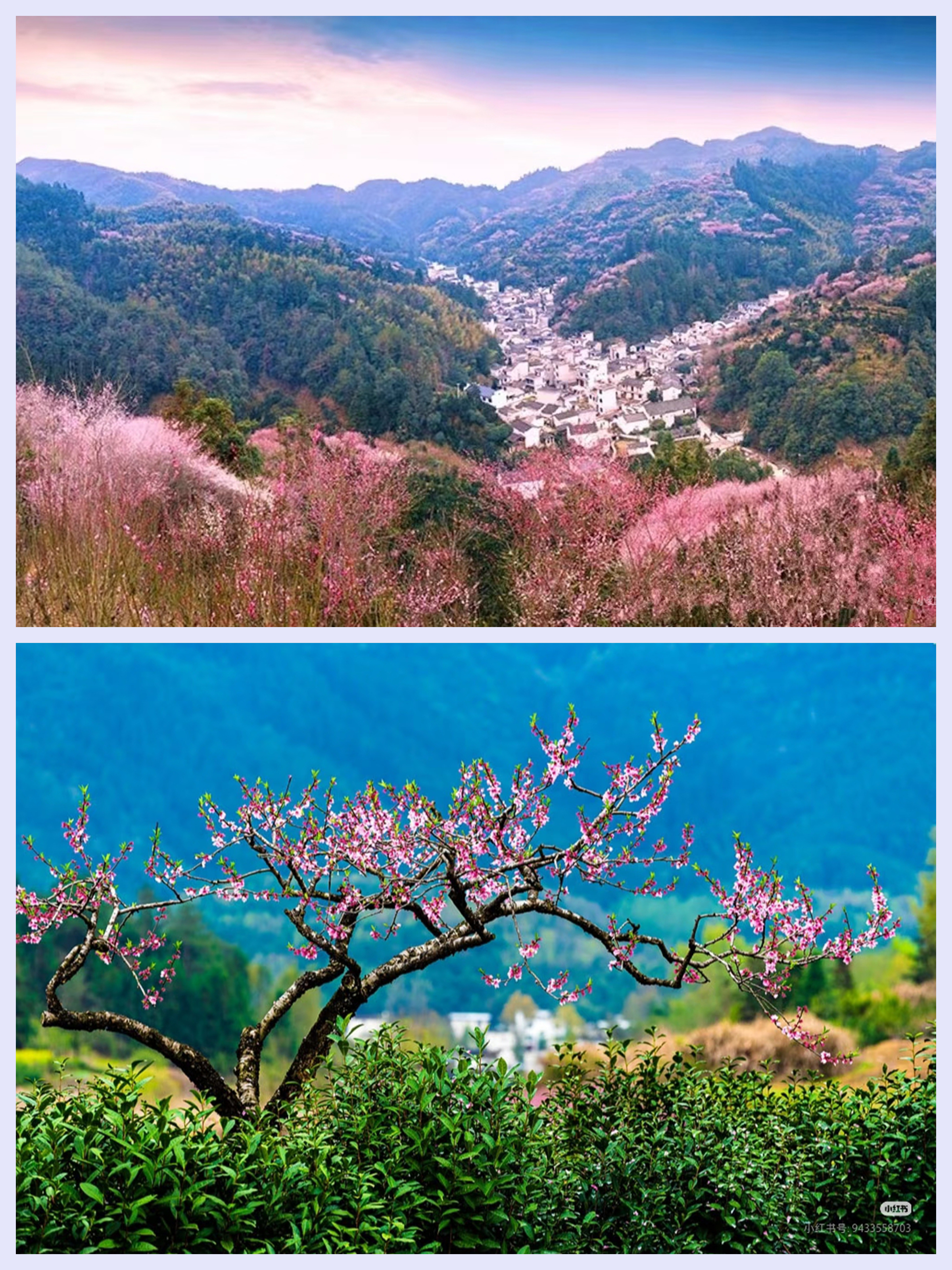 5.五里村桃花:欣赏千亩桃林与粉墙黛瓦的徽派建筑交相辉映,构成如诗如画的田园美景。