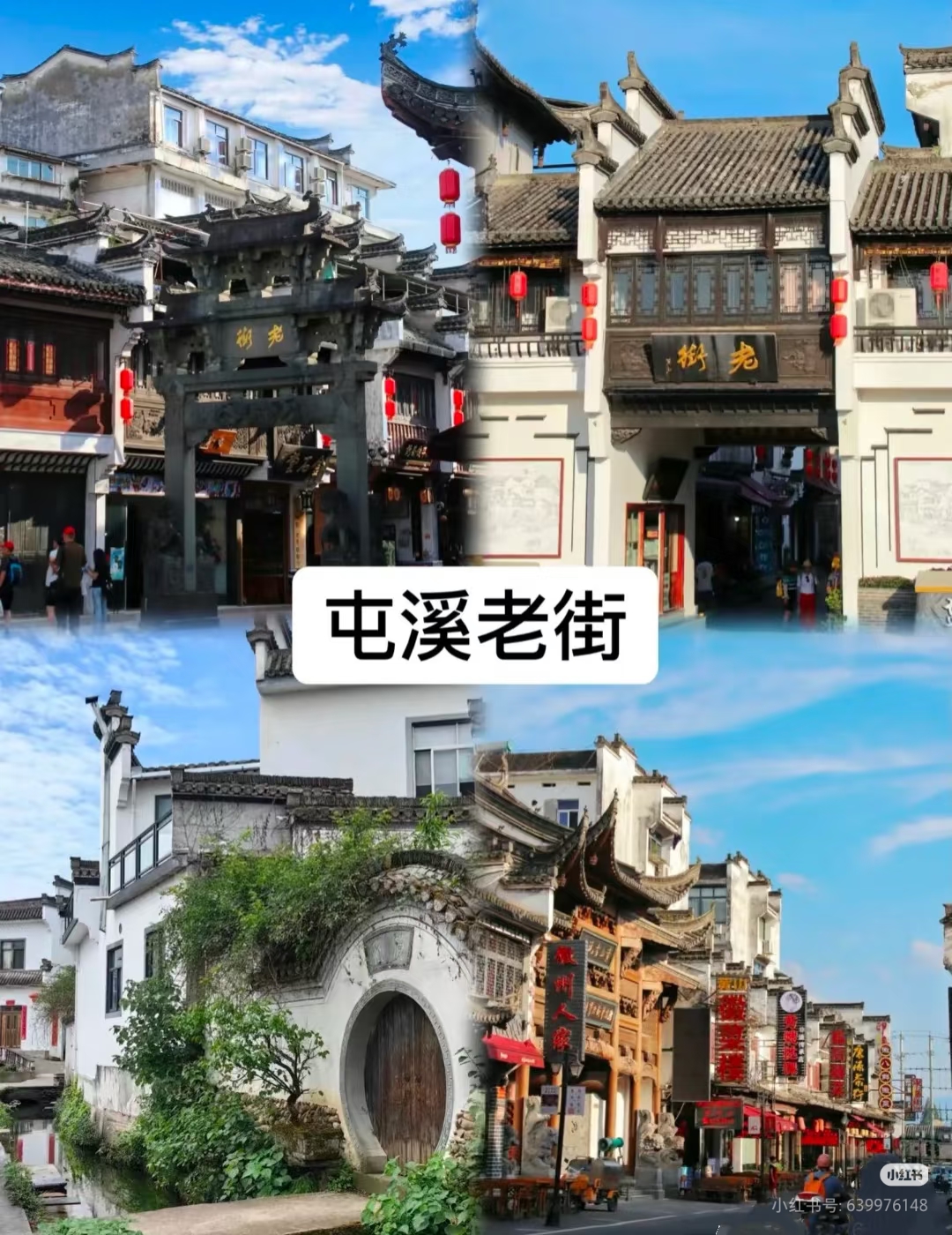 屯溪老街,位于安徽黄山市屯溪区,是首批 “中国历史文化名街”,有 “活动的清明上河图” 之美誉。它依华山、伴新安江,由三江汇流的水埠码头发展而来。全长 1273 米,街巷呈鱼骨架状,300 余幢徽派建筑古色古香,砖木结构,小青瓦、马头墙错落有致,保留着宋明清以来的建筑风格。街内 200 多家商铺林立,“同德仁” 等 60 多家老字号传承着徽商文化。此外,这里还有屯溪博物馆等景点,游客可在此品尝臭鳜鱼、黄山烧饼等美食,感受浓郁的徽风皖韵。