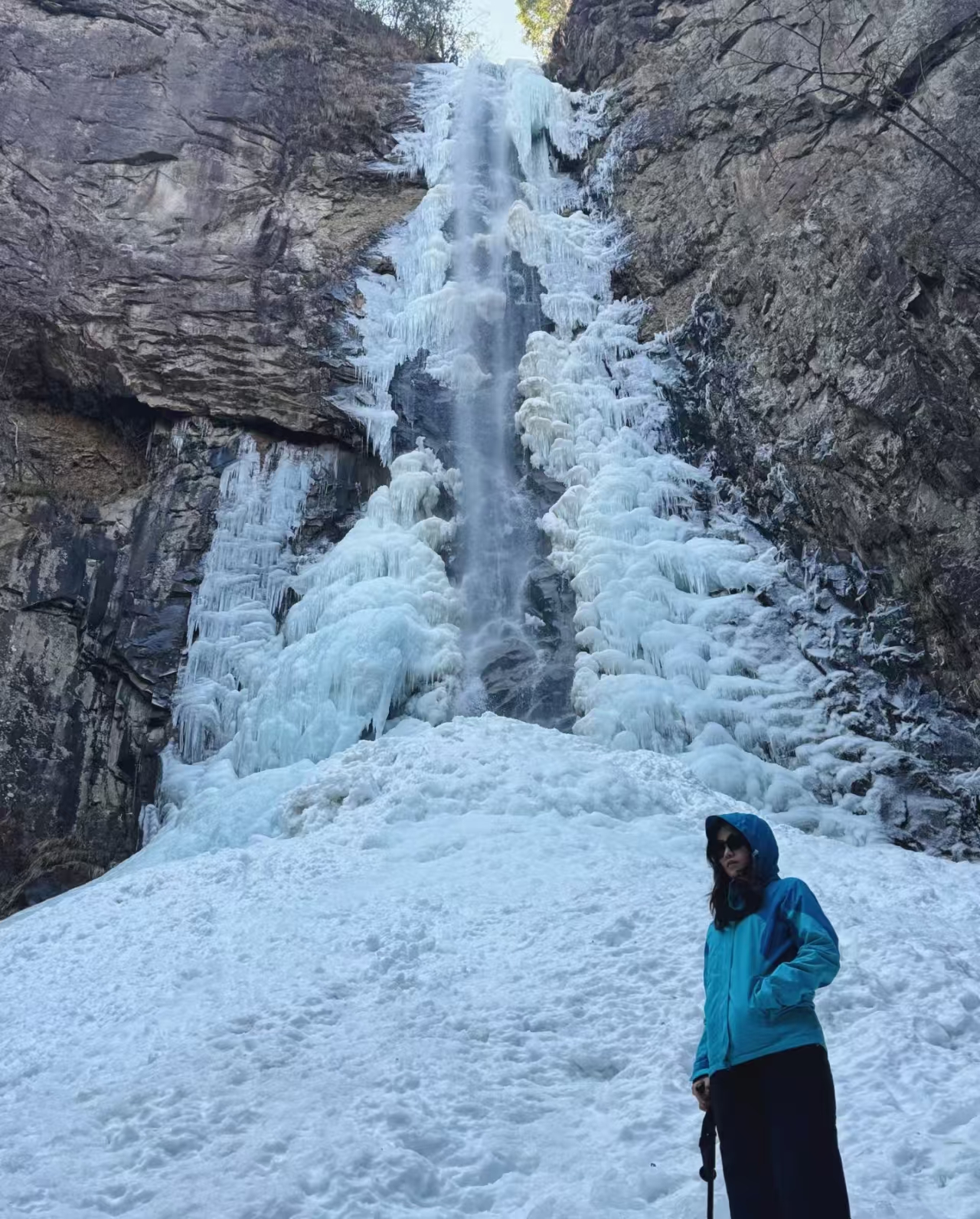 1.双龙湾走进双龙湾,往日奔腾的瀑布被冬日“封印”,变成一座座晶莹剔透的冰雕:有的像倒挂的 冰锥,尖顶闪着寒光;有的像层层叠叠的冰帘,阳光照上去折射出七彩光斑,仿佛闯入 了冰雪版的《冰雪奇缘》片场! 150 米宽的天然水帘洞,冬日变身巨型冰瀑,冰柱、冰笋、冰帘垂挂崖壁,阳光照射下 晶莹剔透,宛如冰雪童话世界;沿桃花溪徒步,一路瀑潭结冰,步步是景。